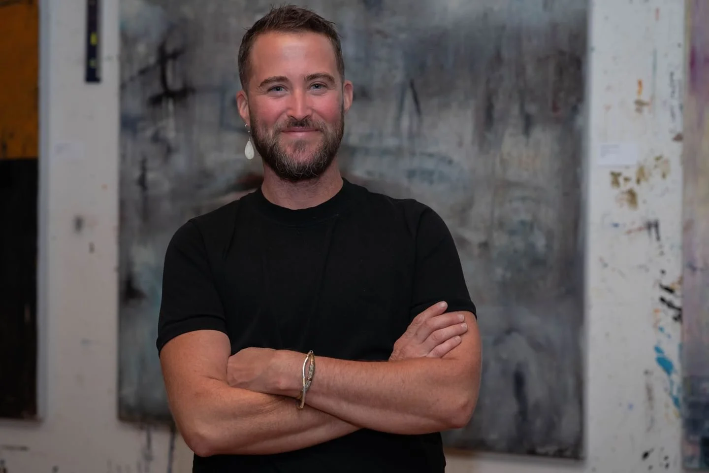 James (born 1978) lived and worked in Chicago, Il from 2005 until late December of 2024. He/they co-owned a pet boutique in Chicago’s Northside neighborhood, Andersonville from 2012 to 2020, where in September of 2020 he sold it to pursue his art practice full time. In April of 2022, James began painting and since painting has become his primary focus.
