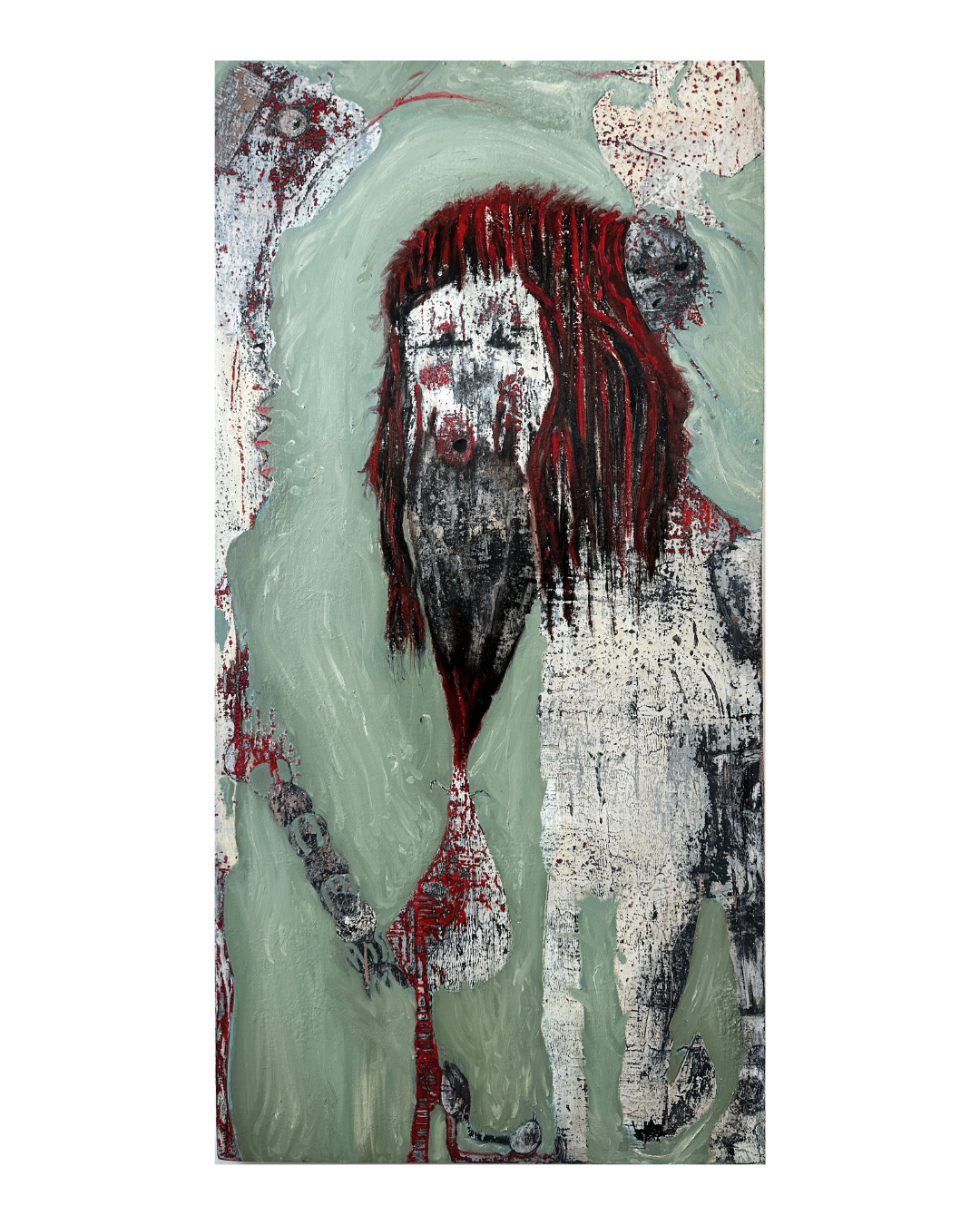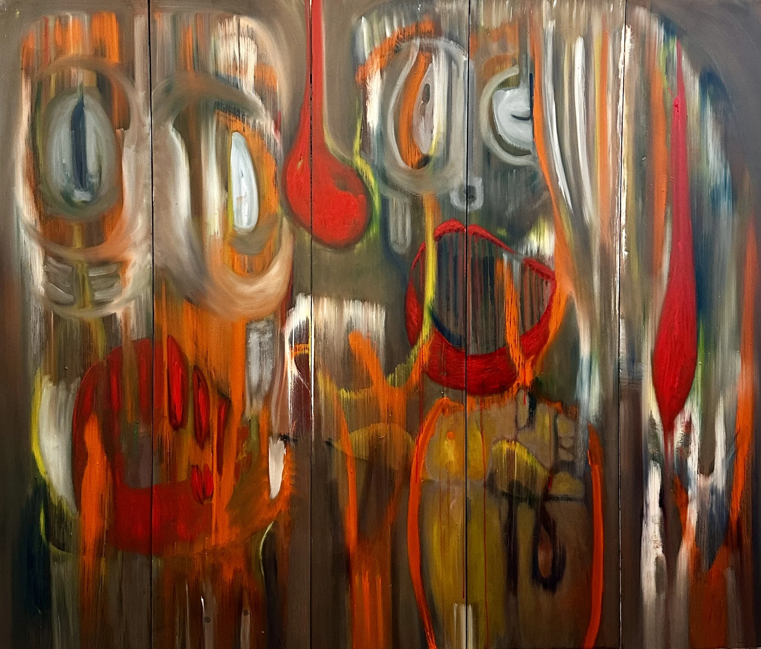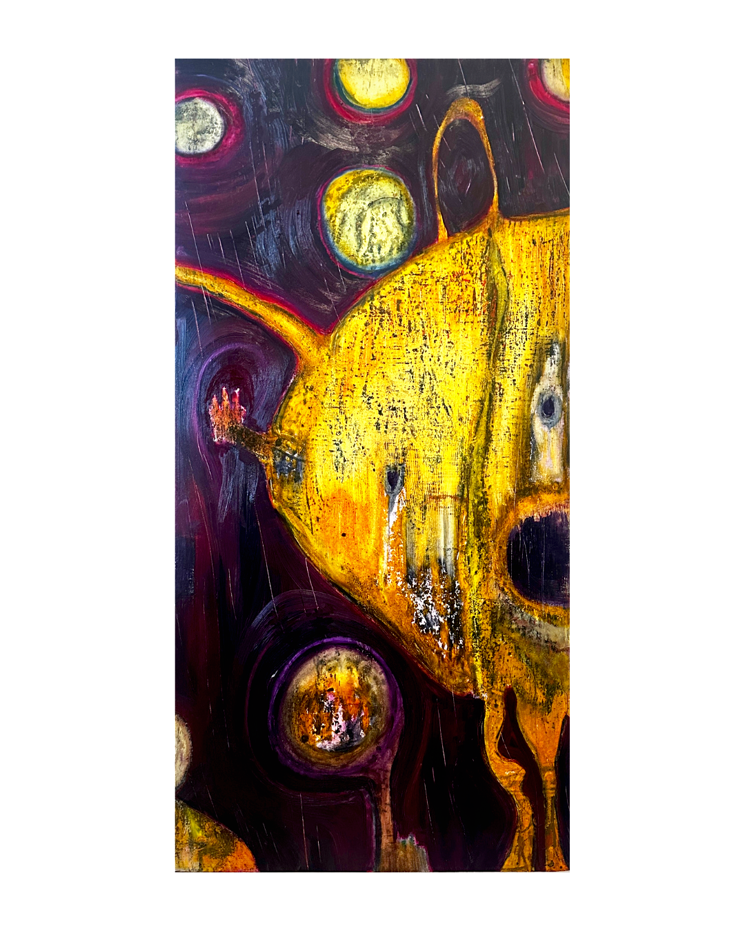 Processing loss and change is the work of the Composting Series. James taps into his subconscious to invite other energies into his/their painting process - familiar faces and energies will develop and suddenly appear in later stages of the painting.