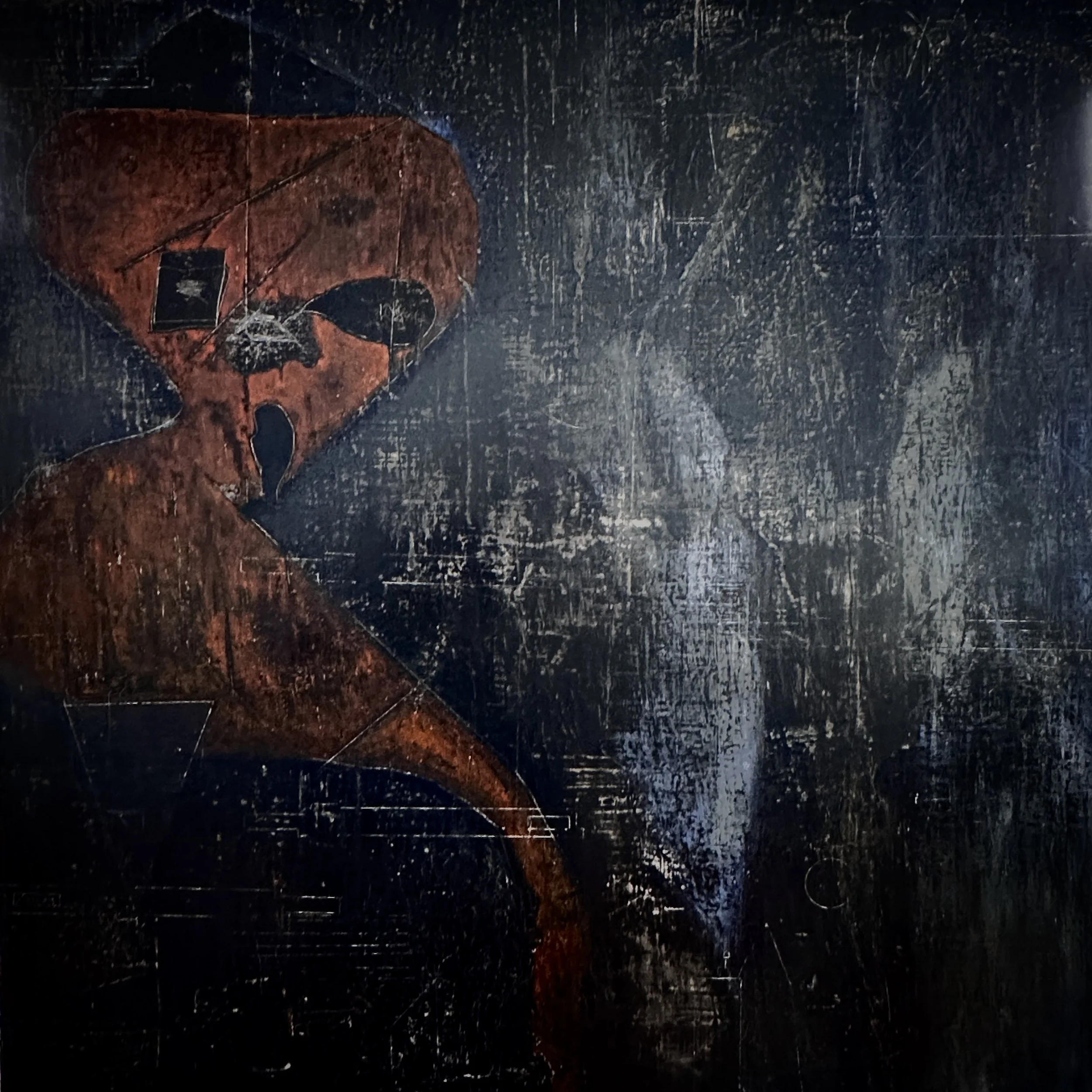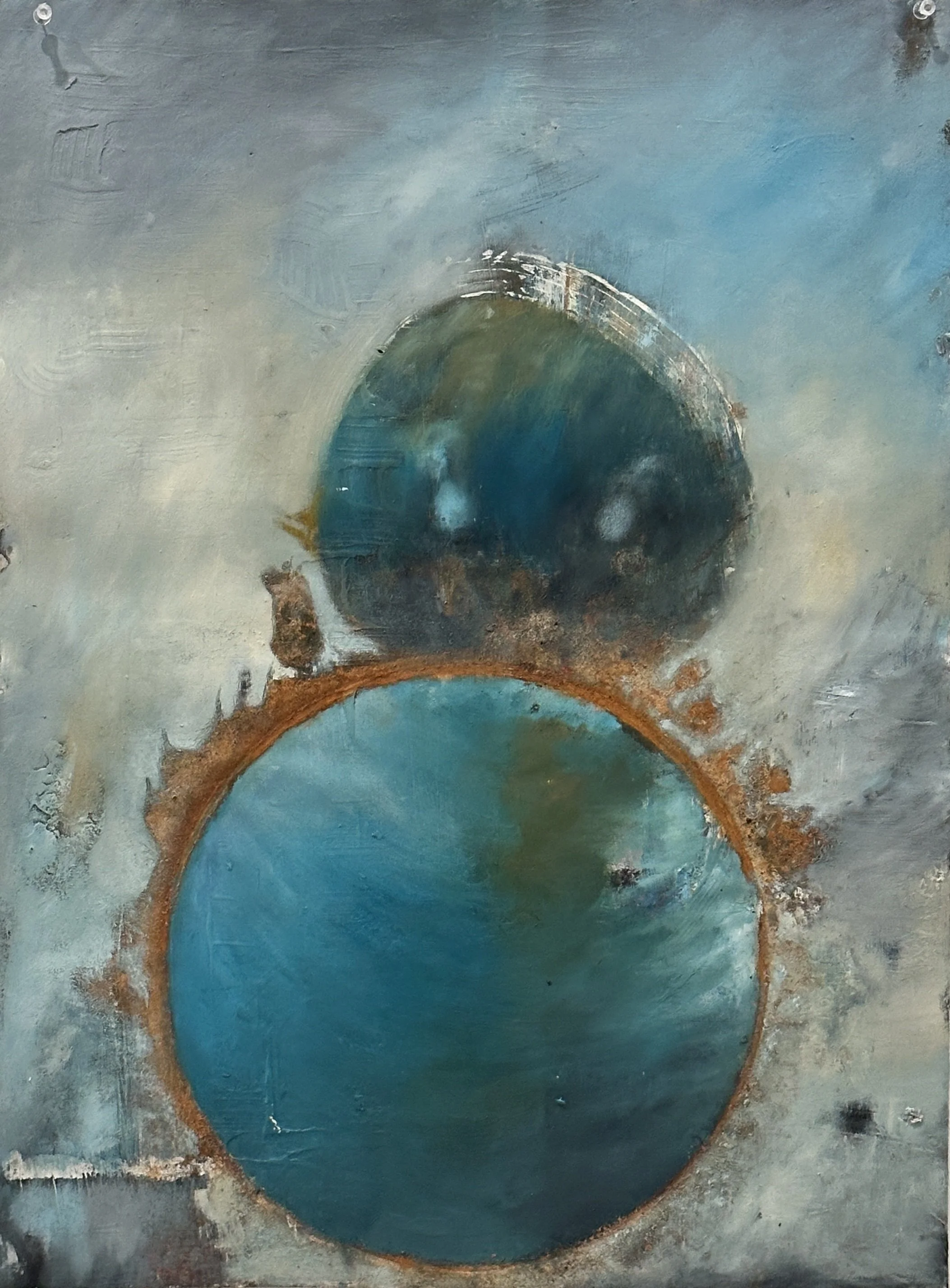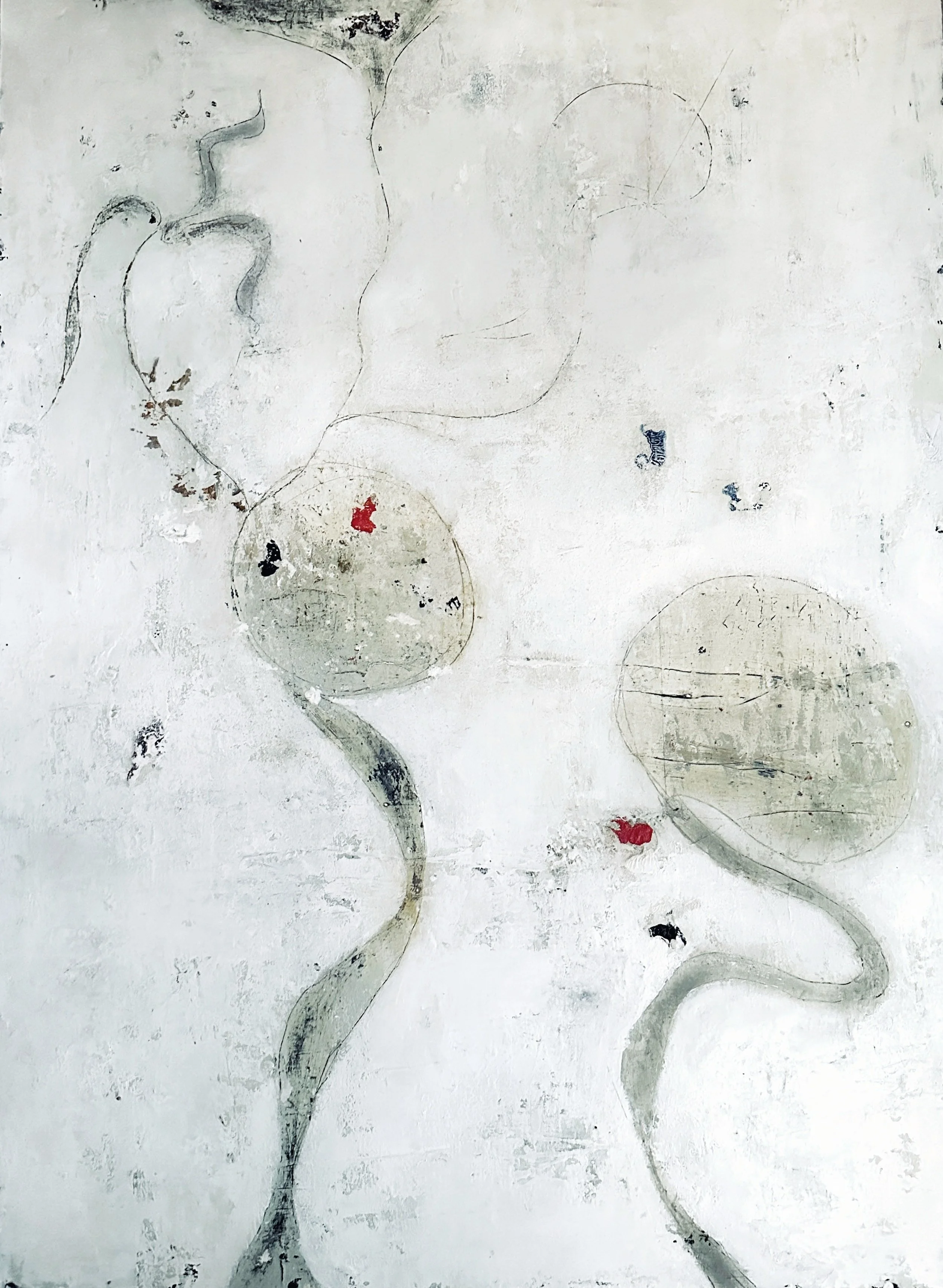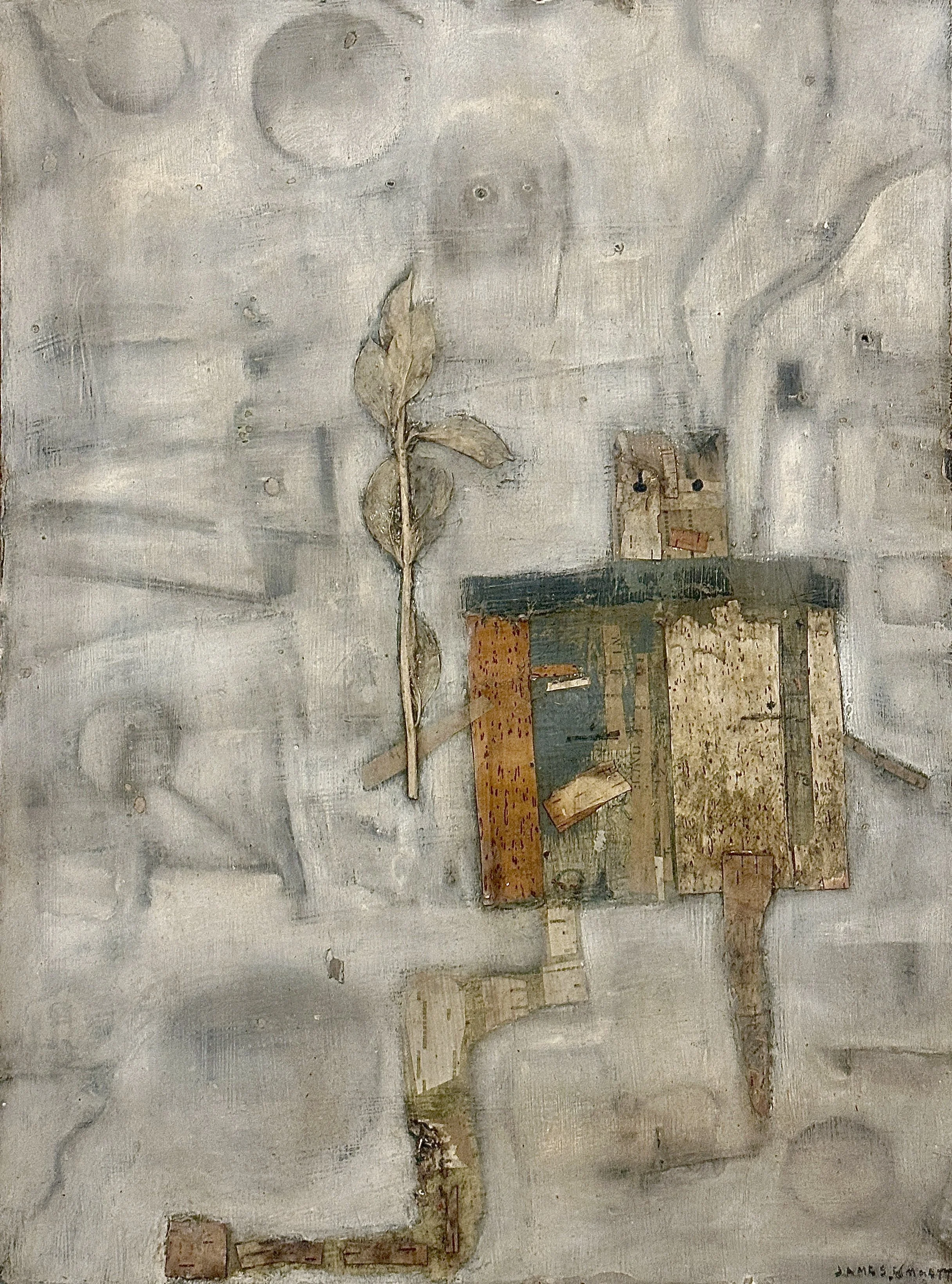 acrylic, dry pigment, wax penciil, birch bark, player piano paper, coffee, coffee grinds
